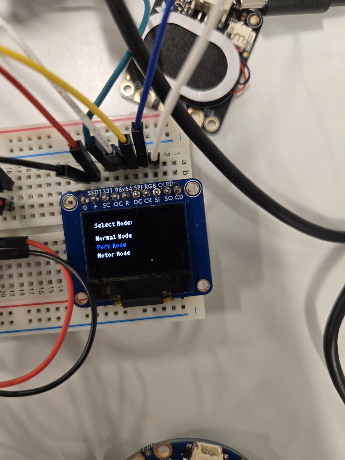 During this mode, if L is pressed it goes into selection mode which allows for three different options, normal, tuning fork and motor modes. When L is pressed during selection mode, it comfirms the mode. If L is pressed during any of these modes it goes back to allow for the user to select a different mode.