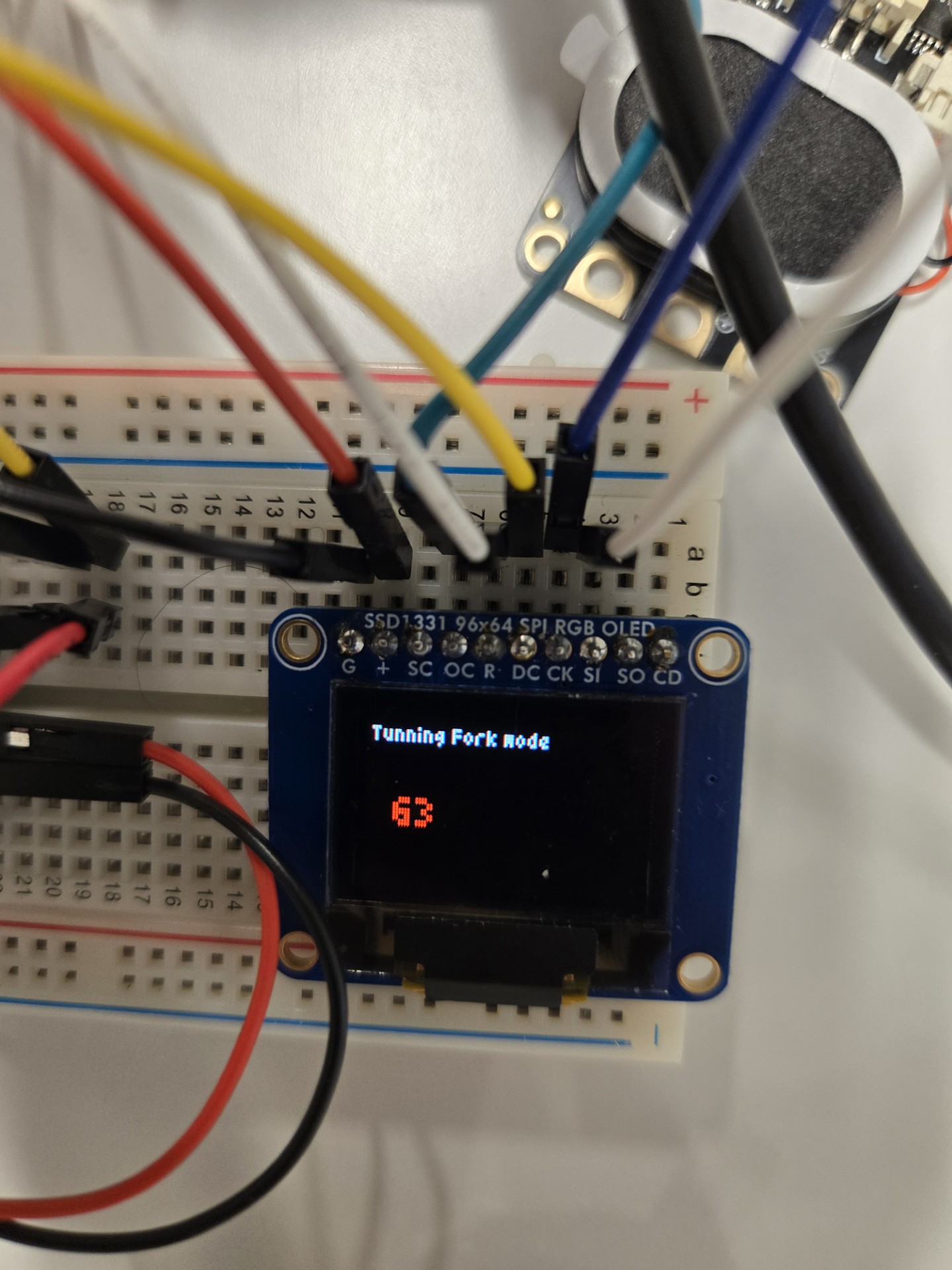 Normal Mode allows the user to to select a note and tune the guitar string accordingly. We are assuming that each string is relatively close to its actual tone, so in order to improve oled performance any “cents” way above the notes range is ignored. There are also audio cues for when a note is in tune.
